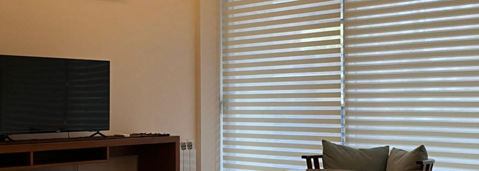 Two-room flat measuring 85 m². Top-quality Patagonia Flooring, marble floors, kitchen, and bathrooms; all new. Kitchen equipped with refrigerator, electric oven, and gas stove. Dining area for 6, spacious living room with TV, large terrace with grill, toilette, en-suite bedroom with large, modern dressing room, and full bathroom. Blackouts, light fixtures, and FULLY FURNISHED with top-quality furniture. Building with garages, laundry room, sauna, gym, and terrace with grill. Front of building.